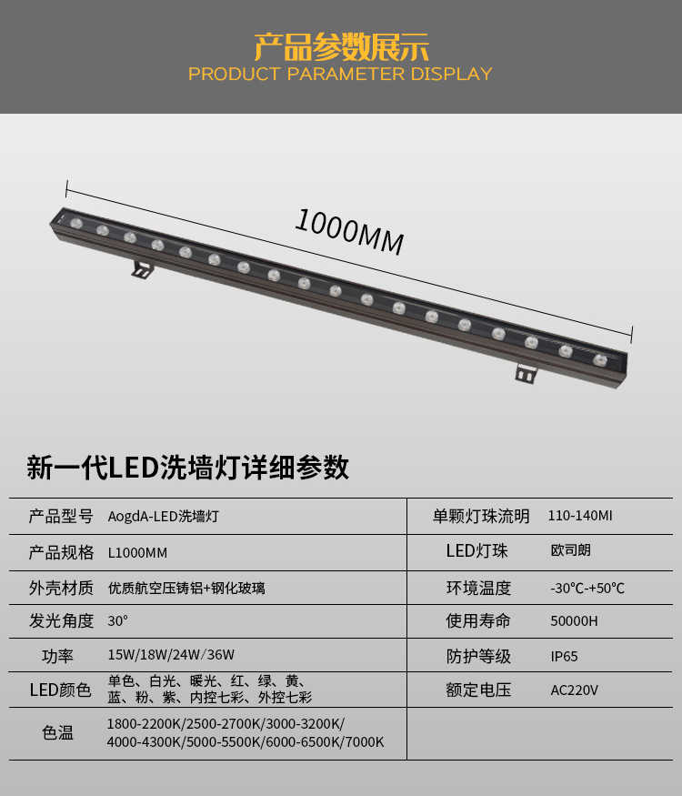 24W:長度為1米;36W:長度為1米;